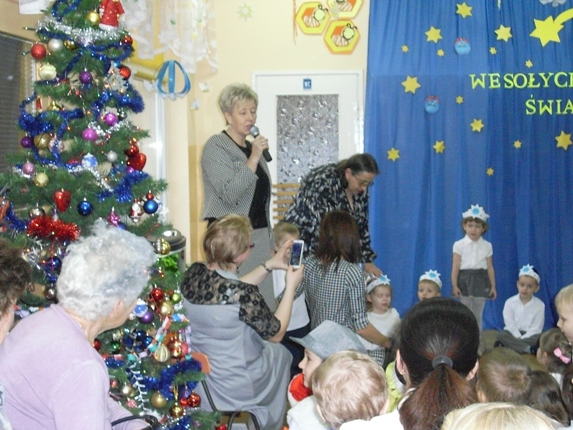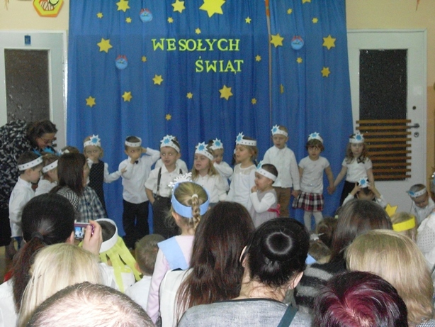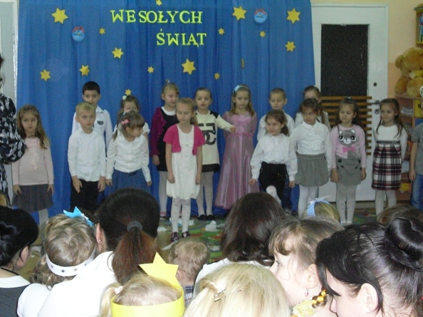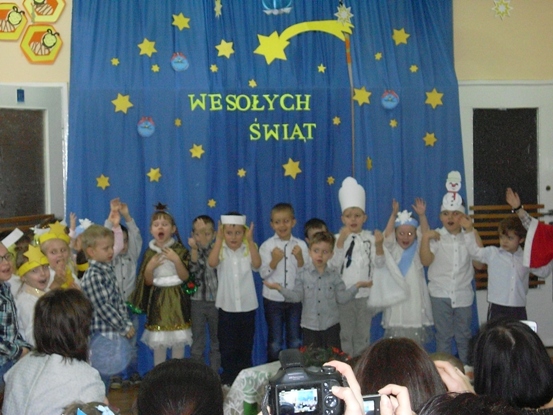 Dnia 19 grudnia 2014 roku w Naszym przedszkolu odbyło się spotkanie choinkowe. Na uroczystości byli obecni rodzice naszych wychowanków i zaproszeni goście. Na początku uroczystości dzieci zaprezentowały swoje umiejętności wokalne i teatralne śpiewając piosenki świąteczne oraz kolędy, a także recytując wiersze pod okiem swoich pań. Po występach dzieci odwiedził wyczekiwany gość- Swięty Mikołaj i wręczył każdemu upominek. Następnie pani dyrektor zaprosiła wszystkich zgromadzonych do wspólnego degustowania dań wigilijnych przygotowanych przez nasze panie kucharki dzięki pomocy rodziców. Podczas uroczystości jak co roku z twarzy naszych wychowanków jak i ich rodziców nie schodziły uśmiechy - panowała przyjemna, rodzinna atmosfera.