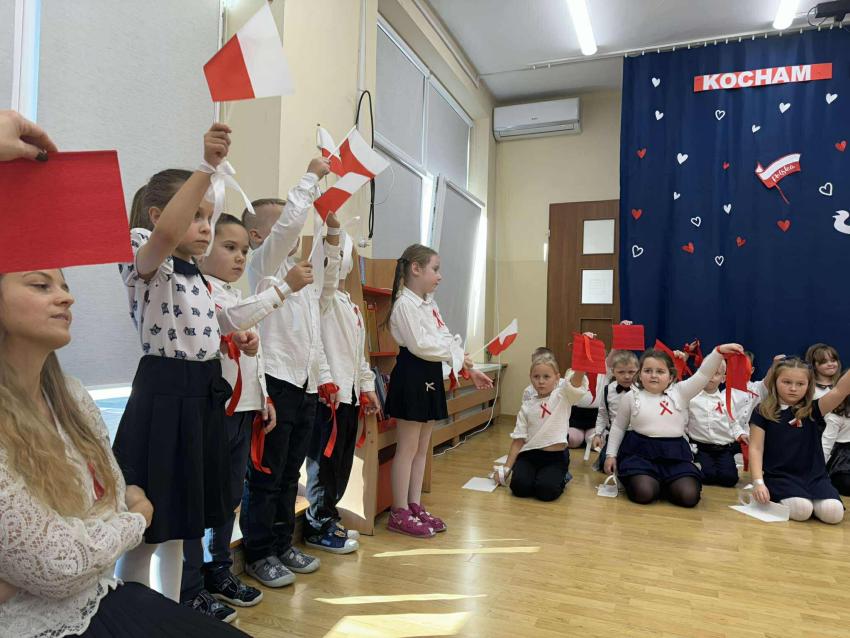 6 listopada w naszym przedszkolu odbyła sie uroczysta akademia z okazji Święta odzyskania Niepodległości. Dzieci z grupy Tygryski oraz Skrzaty we wzruszającym montażu słowno - muzycznym przekazały młodszym kolegom i koleżankom co znaczy niepodległość, przedstawiły jak ważne dla nas - Polaków jest to święto. Na koniec dzieci oraz wszyscy pracownicy odśpiewali Hymn Narodowy. Serdecznie dziękujemy Paniom oraz dzieciom z najstarszych grup za wspaniały apel.
