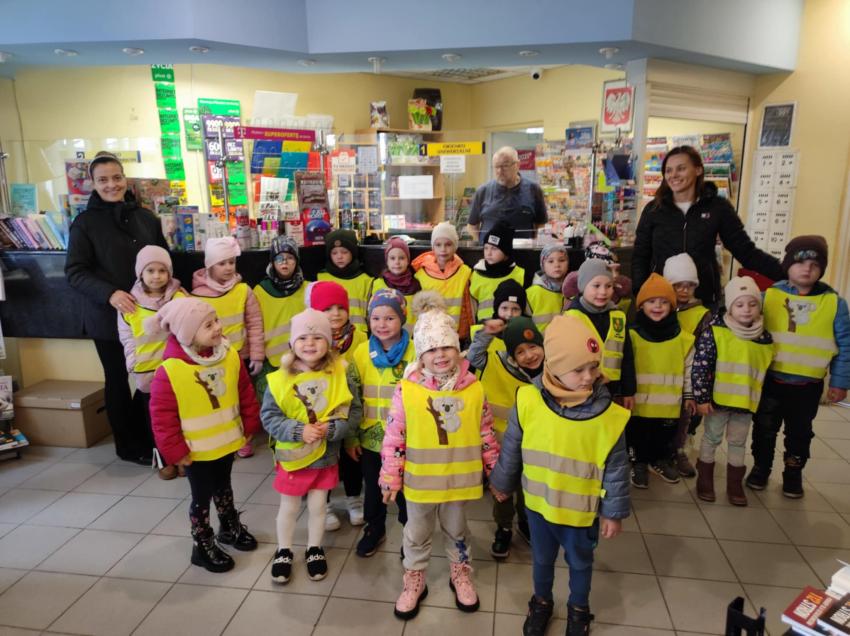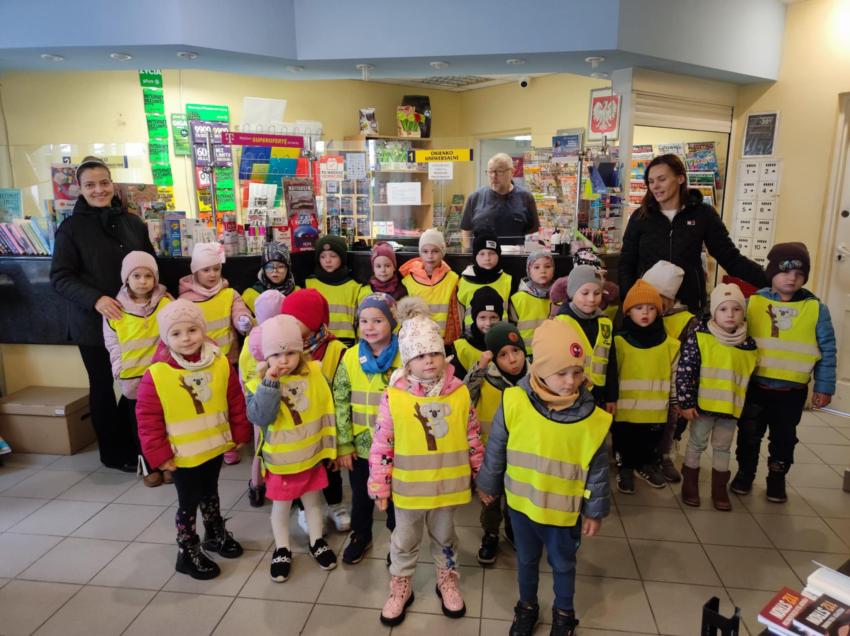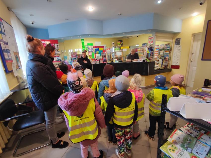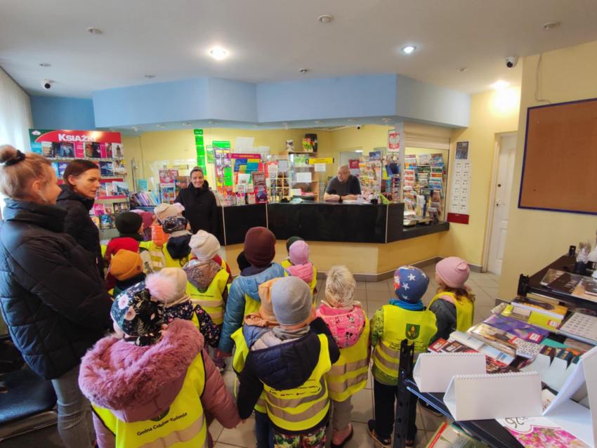 17 października obchodziliśmy Dzień Poczty Polskiej. Z tej okazji grupy: Krasnale i Skrzaty wybrały się na pocztę, aby poznać bliżej pracę listonosza oraz dowiedzieć się, jak wygląda droga listu i paczki od nadawcy do adresata. Dzieci z zainteresowaniem obserwowały, jak wygląda codzienna praca na poczcie, gdzie można nadać list, kupić znaczek czy odebrać przesyłkę. Na koniec wręczyły pracownikowi poczty jesienne laurki. W drodze powrotnej odwiedziły również warzywniak, gdzie utrwaliły poznane w tygodniu nazwy warzyw i ich znaczenie jakoś źródło witamin.