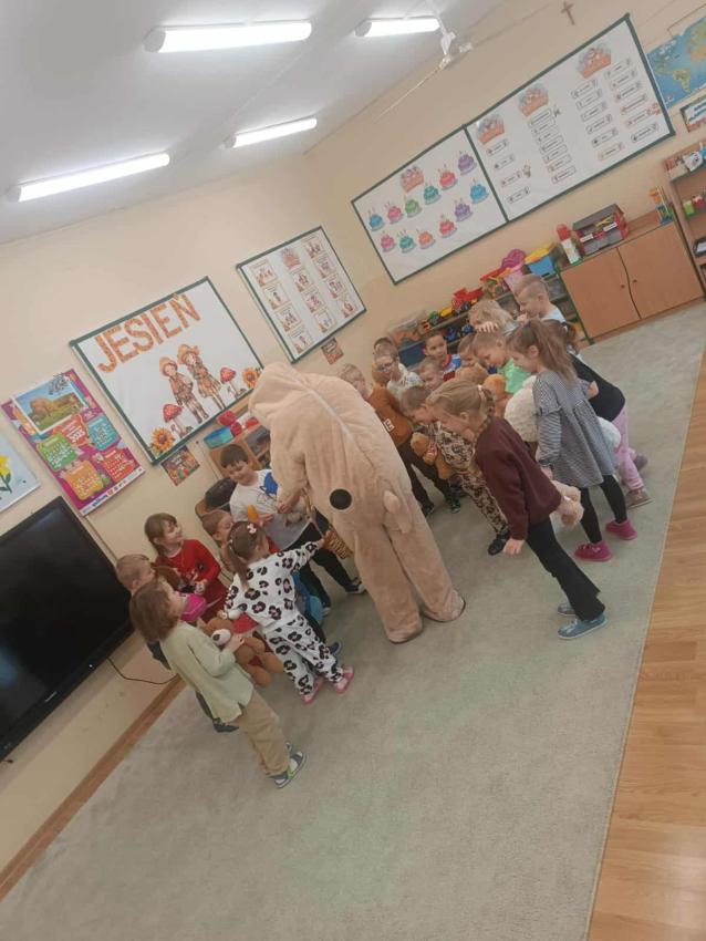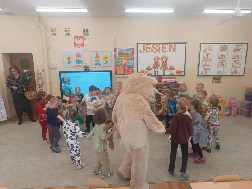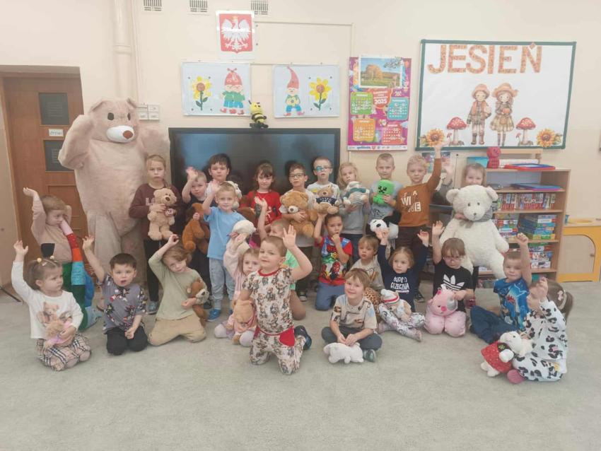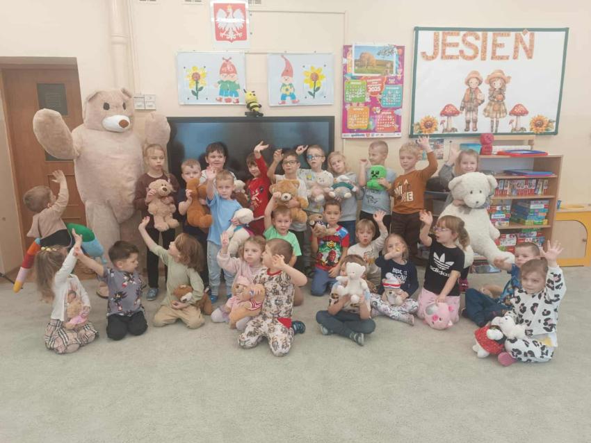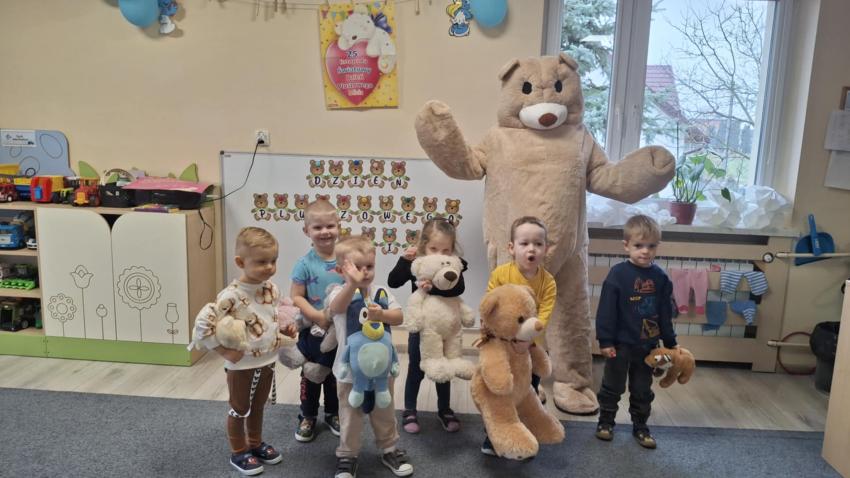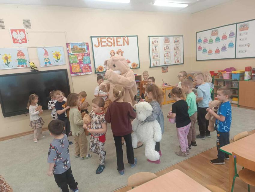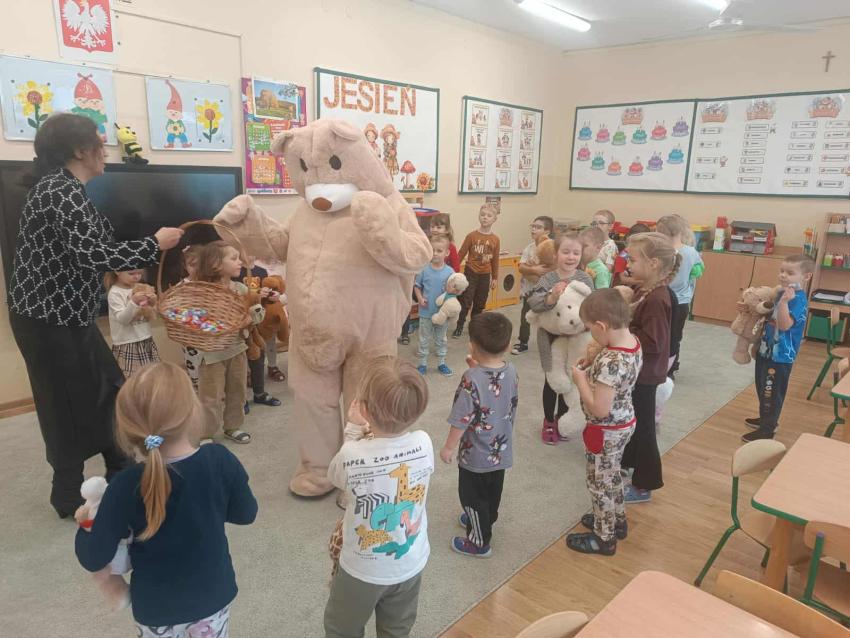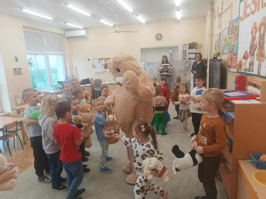 Jak co roku 25 listopada naszą placówkę odwiedziły najmilsi przyjaciele przedszkolaków - ich pluszowe misie. Tego dnia dzieci bawiły się z misiami przez cały dzień, pluszaki towarzyszyły im podczas codziennych rytuałów. Pojawił się także prawdziwy pluszowy Miś, który zapewniał o swojej dozgonnej przyjaźni z dziećmi, a także miał dla nich słodkie co nieco.