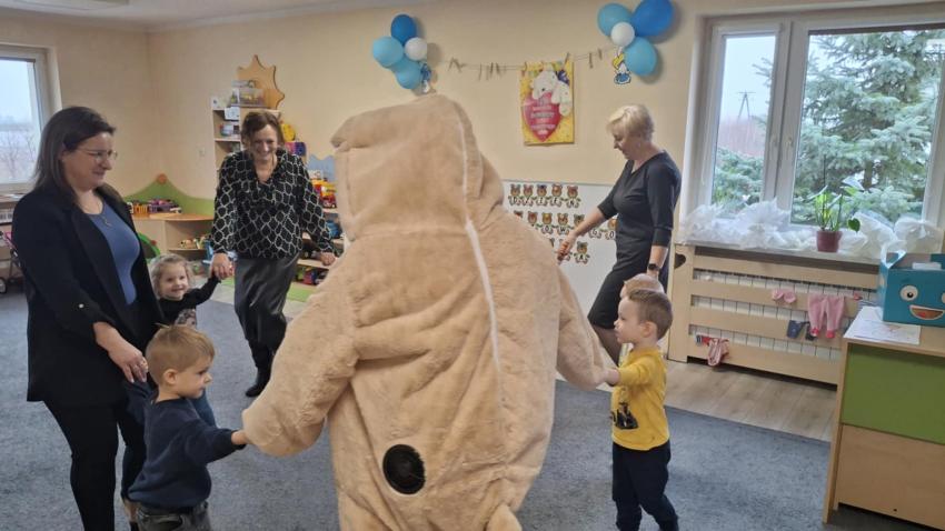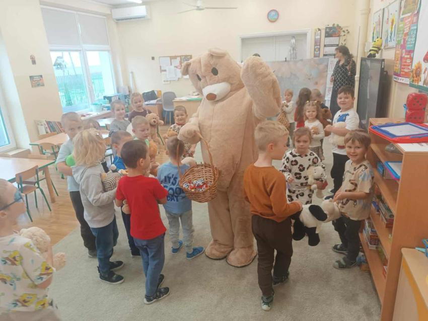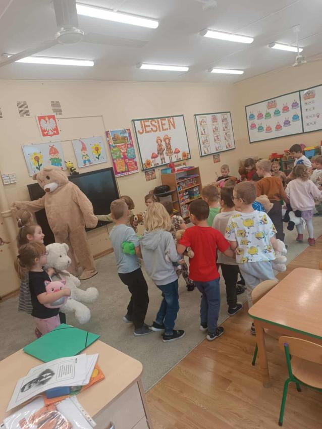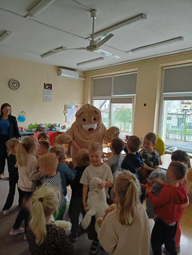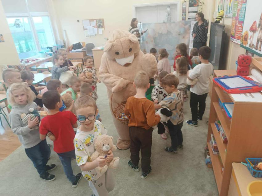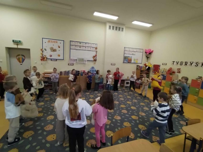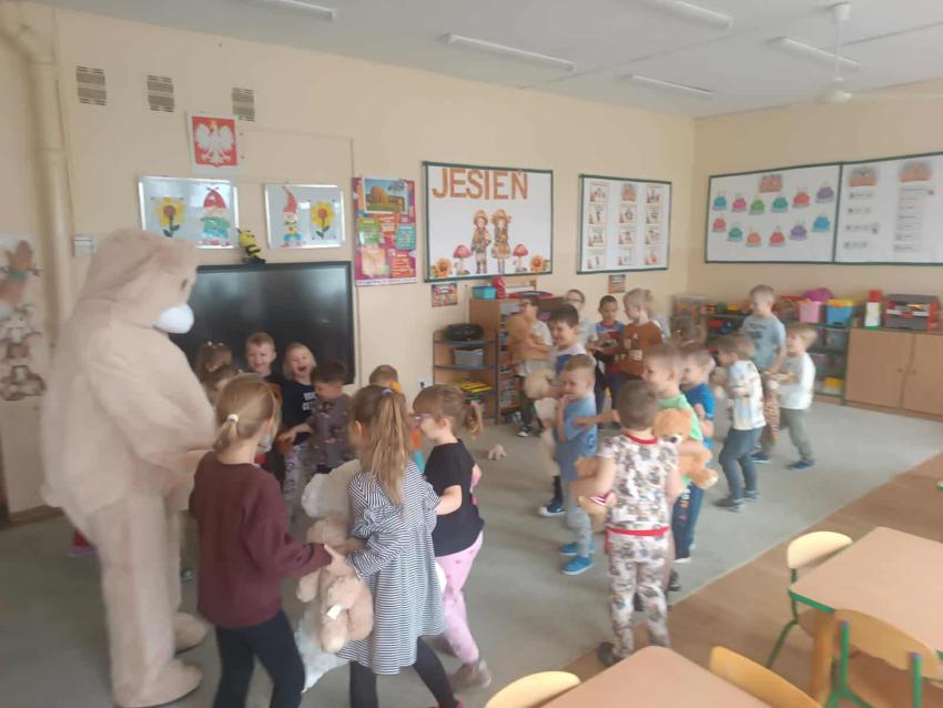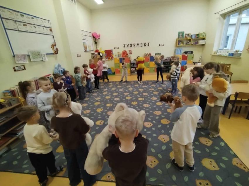 Jak co roku 25 listopada naszą placówkę odwiedziły najmilsi przyjaciele przedszkolaków - ich pluszowe misie. Tego dnia dzieci bawiły się z misiami przez cały dzień, pluszaki towarzyszyły im podczas codziennych rytuałów. Pojawił się także prawdziwy pluszowy Miś, który zapewniał o swojej dozgonnej przyjaźni z dziećmi, a także miał dla nich słodkie co nieco.