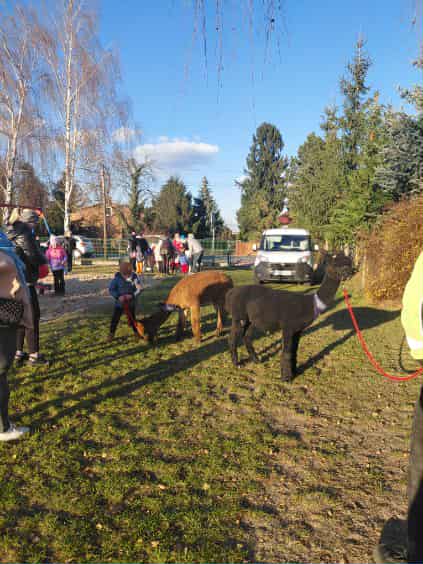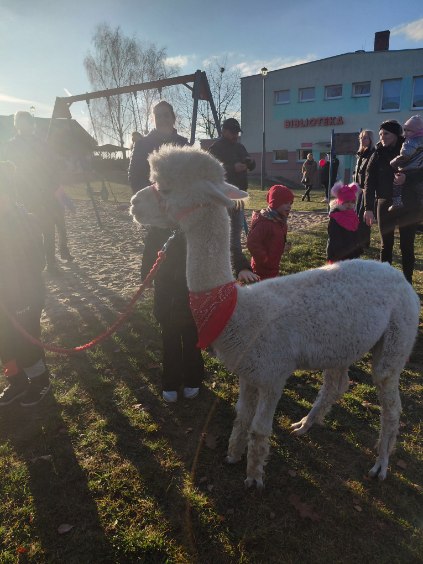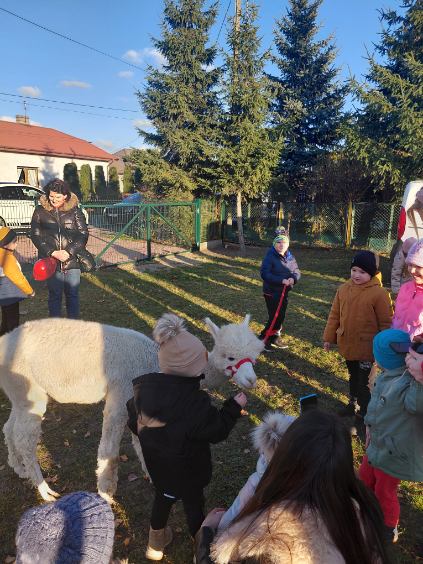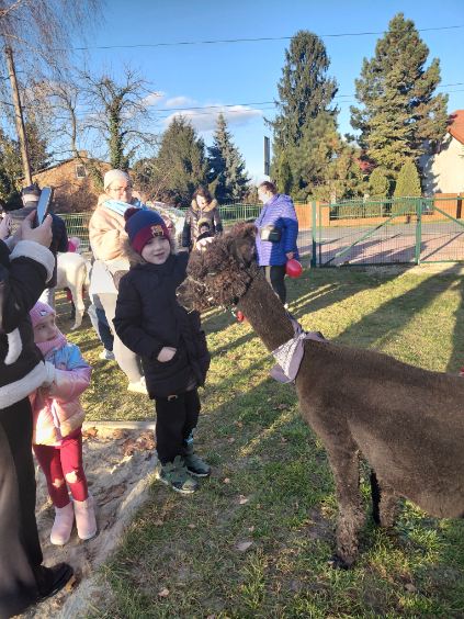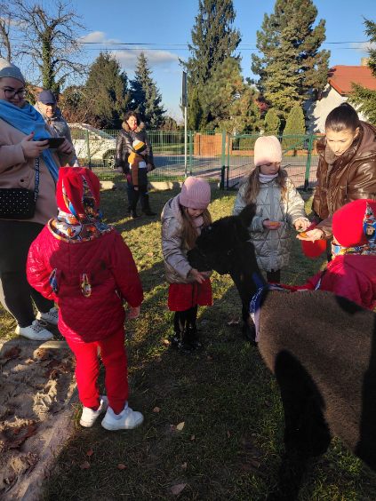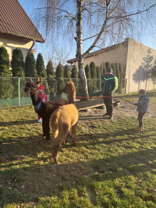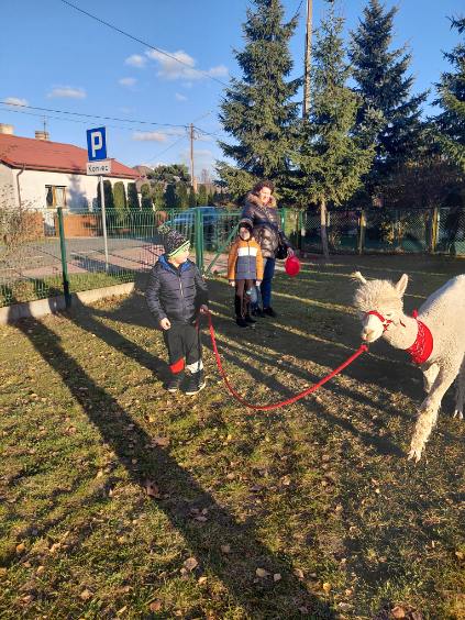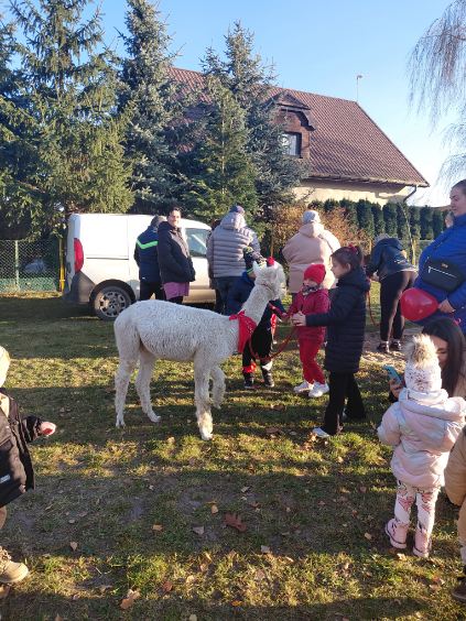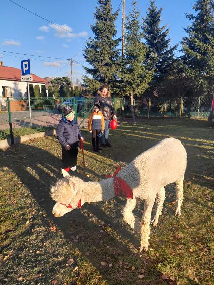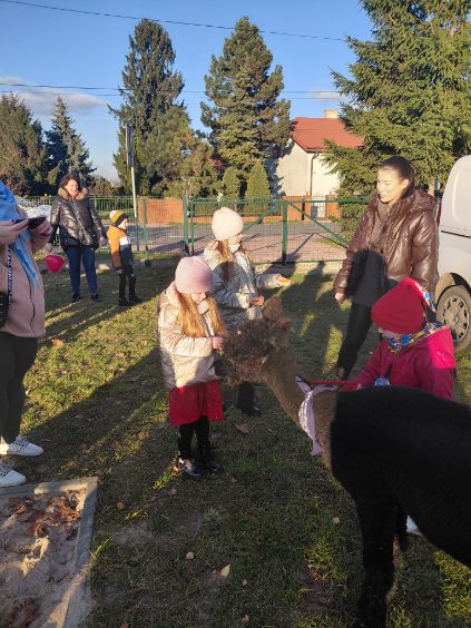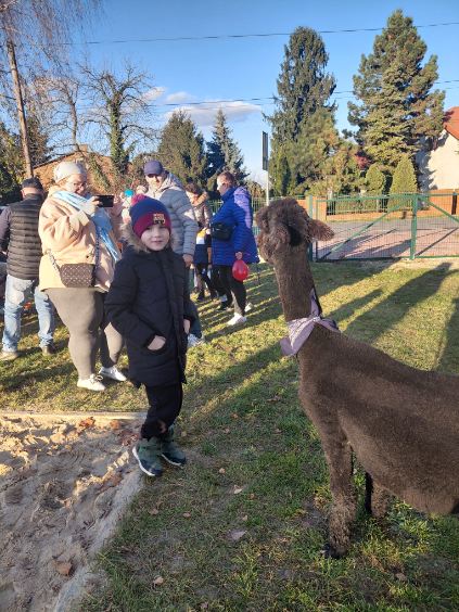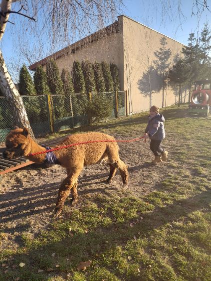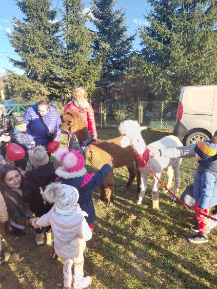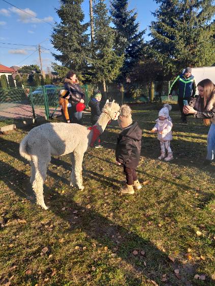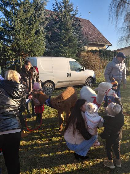 Stowarzyszenie ?Razem dla Cekowa? ufundowało naszym przedszkolakom spacer z alpakami z ?Alpakoteli? z Kamienia. Dzieci miały możliwość przyjrzenia sie tym miłym zwierzętom, pogłaskania ich, a także spacerowania po placu. Spacer z alpakami przynosi korzyści w postaci redukcji stresu i poprawy nastroju, dzięki kontaktowi z łagodnymi zwierzętami, który działa kojąco na psychikę. Dodatkowo, spacer wspomaga rozwój umiejętności społecznych i ruchowych, jest także formą aktywności na świeżym powietrzu, która korzystnie wpływa na samopoczucie i ogólne zdrowie.