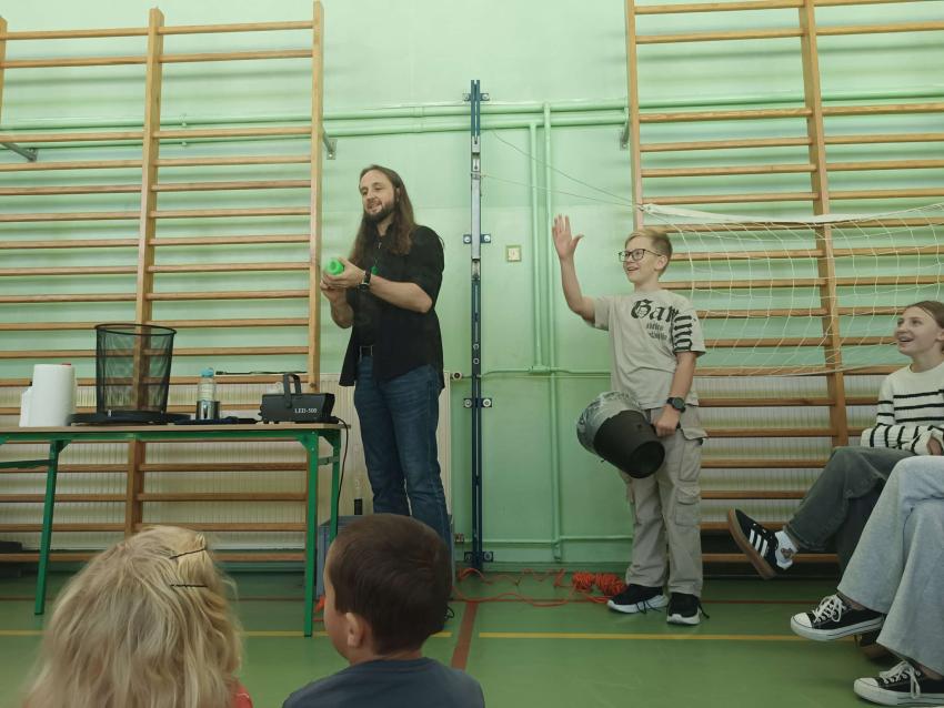 4 Listopada Grupy Tygryski i Skrzaty miały okazje uczestniczyć w nietypowej lekcji przyrody, zorganizowanej na sali gimnastycznej szkoły Podstawowej w Cekowie-Kolonii. Pod okiem doświadczonego fizyka , dzieci mogły dowiedzieć się w jaki sposób stworzyć powietrzną armatę i ogniste tornado. Zobaczyły również jak długo może się obracać dysk i jakie możliwości daje ciekły azot. Na zakończenie ogromnych wrażeń dał dzieciom pokaz podczas którego dziewczynka relaksowałą się leżąc na ostrych igłach. Wszystkie dzieci z zachwytem oklaskiwały każdy eksperyment.